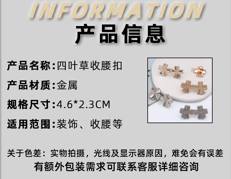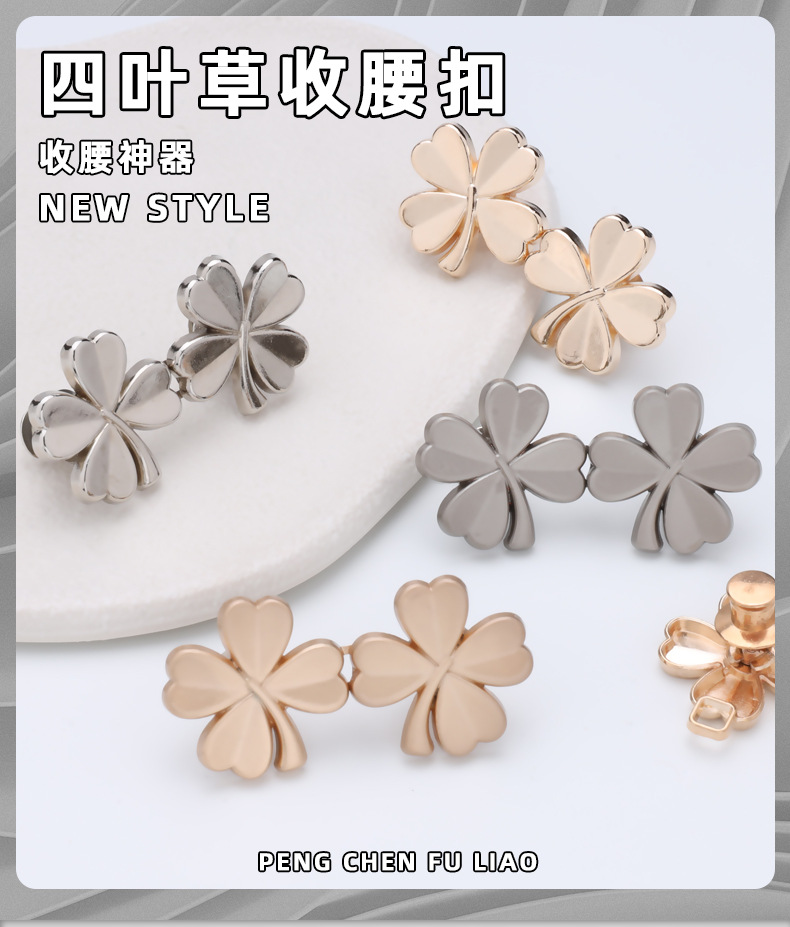 半小時前四叶草金属收腰扣 可拆卸免缝免钉收腰鈕扣 小對扣 牛仔裤收腰扣腰的神器 腰圍調節扣 固定扣 - 團購價10入組1199