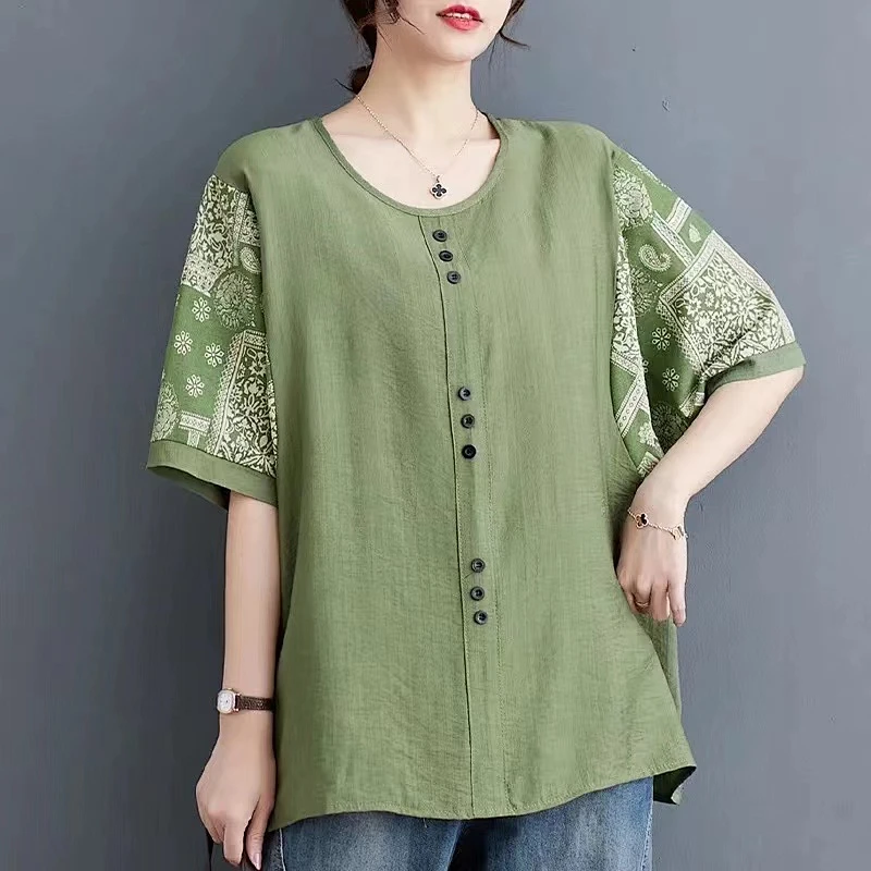 5分鐘前夏季新款棉麻短袖t卹女款寬鬆大尺碼胖mm印花拼接媽媽五分袖純棉上衣 - 買二送二! 僅售 NT$ 1498